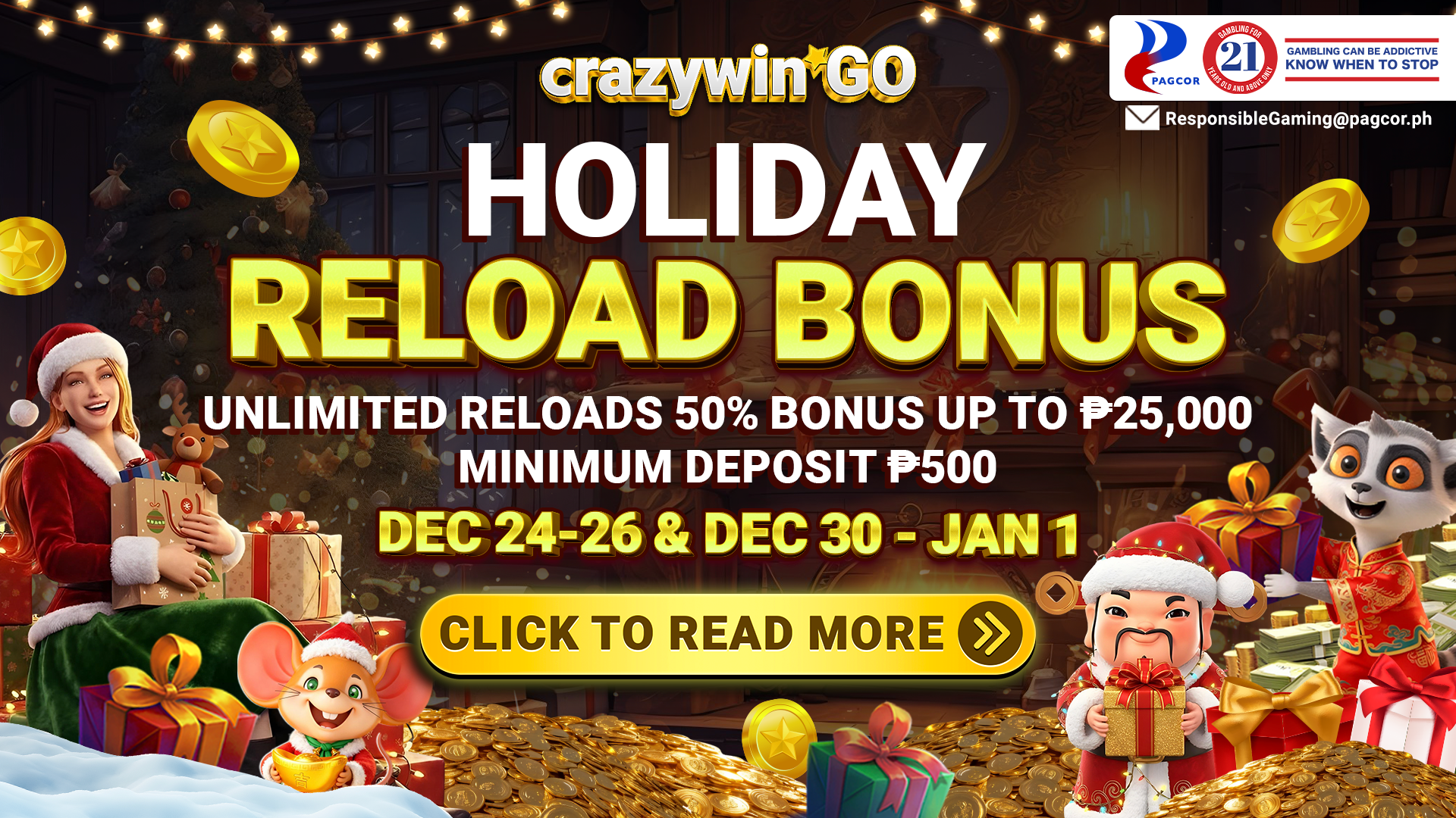Enjoy a special 50% reload bonus (max bonus P25K) on all deposits from Dec 24 - 26 and Dec 30 - Jan 1!