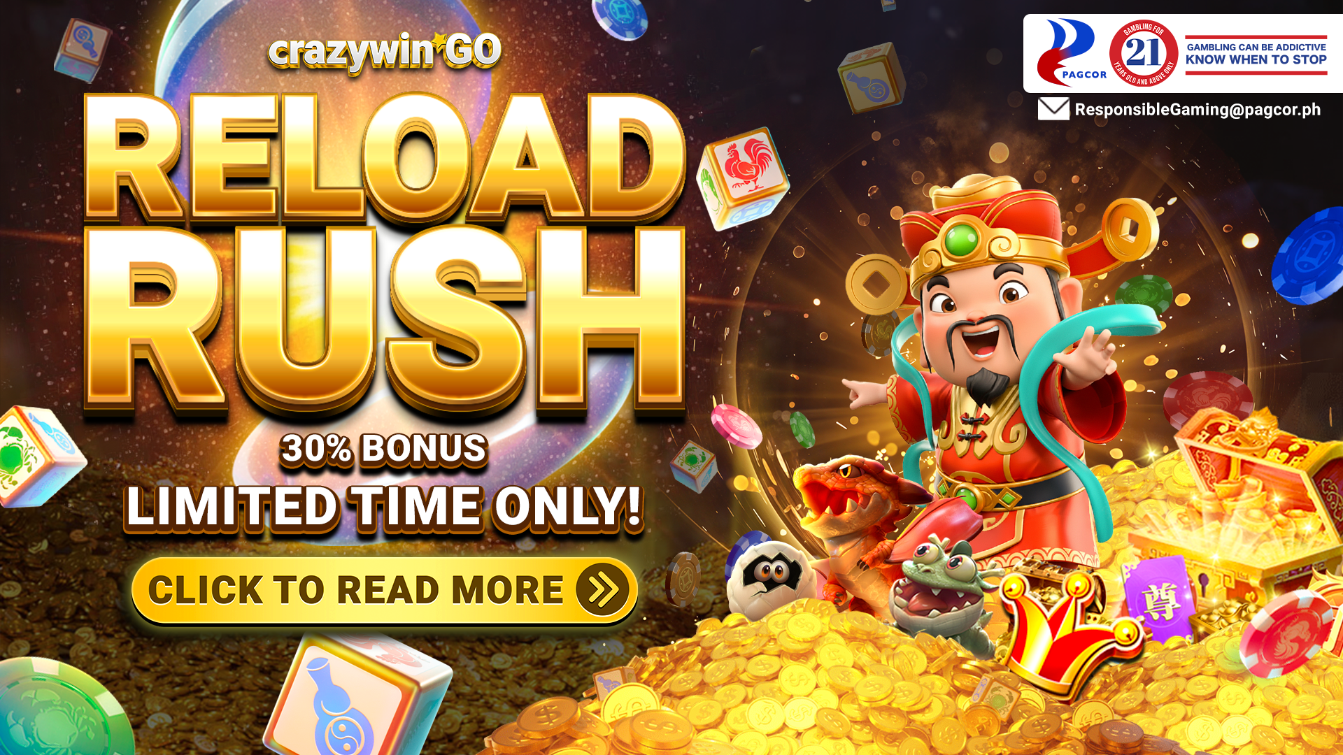 On January 15 - January 18, we’re activating a special unlimited 30% reload bonus to all our players. The minimum deposit required to take part is P500, and the maximum bonus amount is P15K (or a 30% of P50,000 deposit).